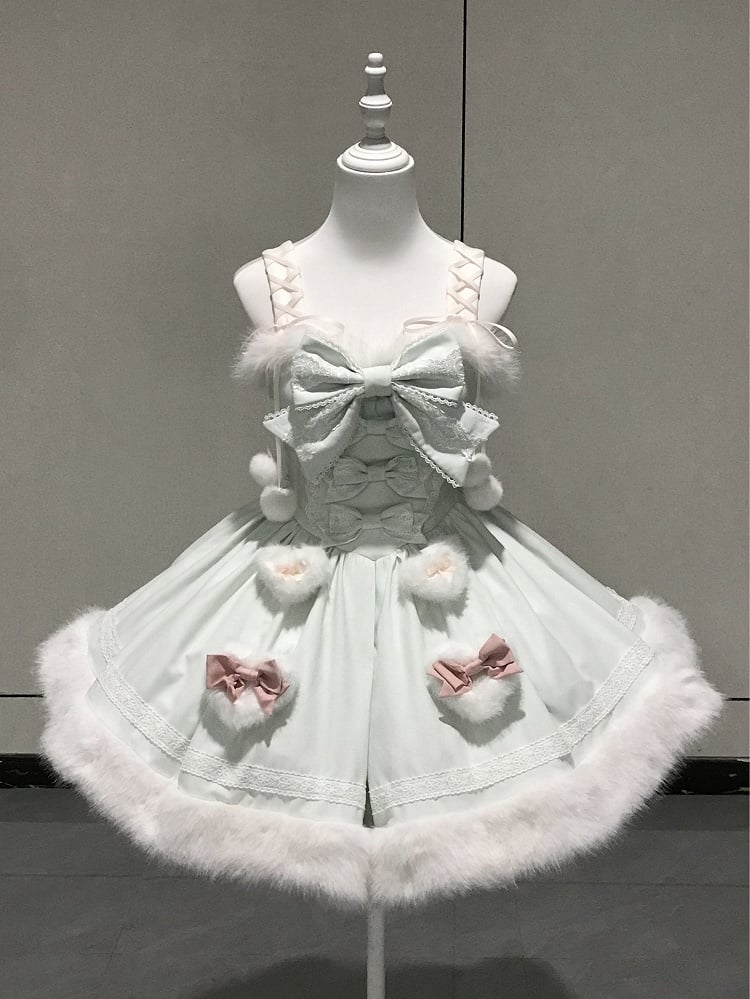 Bunny Ears Hooded Cape - Sweet Lolita Pink & White Faux Fur Dress