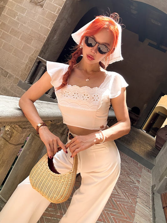 Floral Design Lace Trim White Vintage Hat