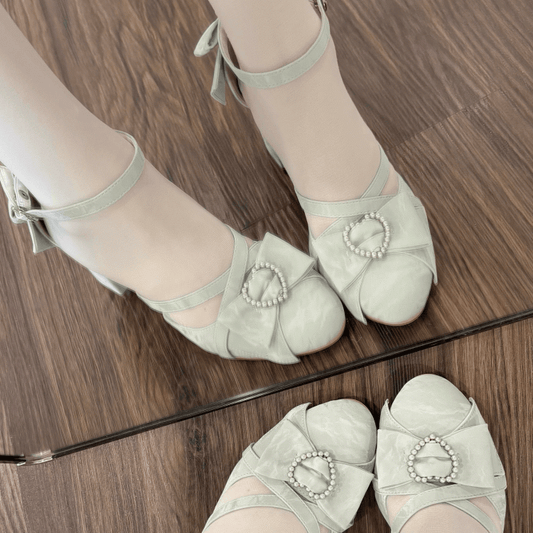Accents Green Beaded Crisscross Sandals Heel High with Straps Bow - Sweet Lolita Heart Block