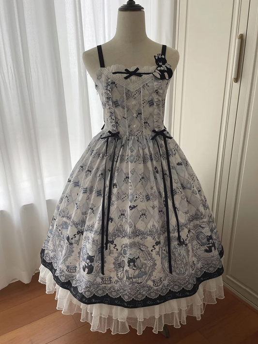 Alice and Kitty Bunny Jumper Theme Skirt Lolita Print in Wonderland