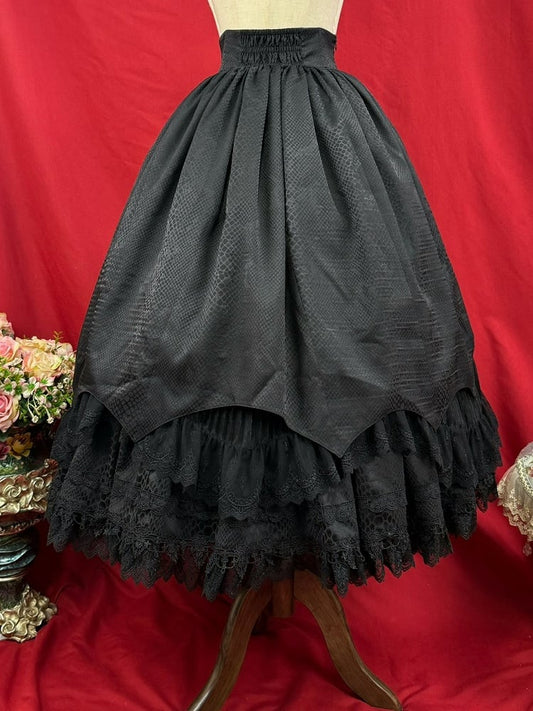 + Skirt Lolita Corset Waist Black Layered Overlay High Under Gothic Curved Belt