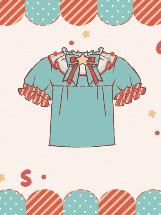 and Lolita Bow Plaid Puff-Sleeve Ruffles White with Blouse