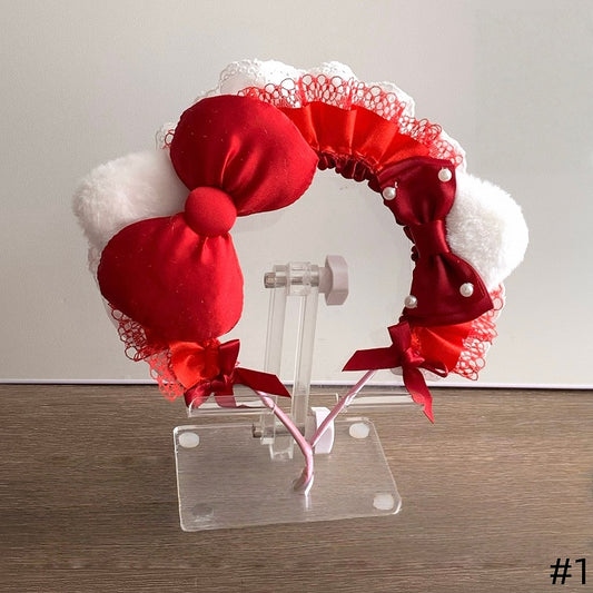 Available Color Kitty Ears Lolita Cute Bowknot Beads with Options Plush - Sweet KC 2