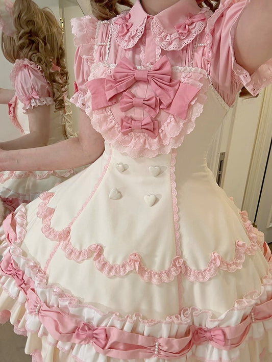 / Blouse Bows Small Pink Short Decoration Sleeves White