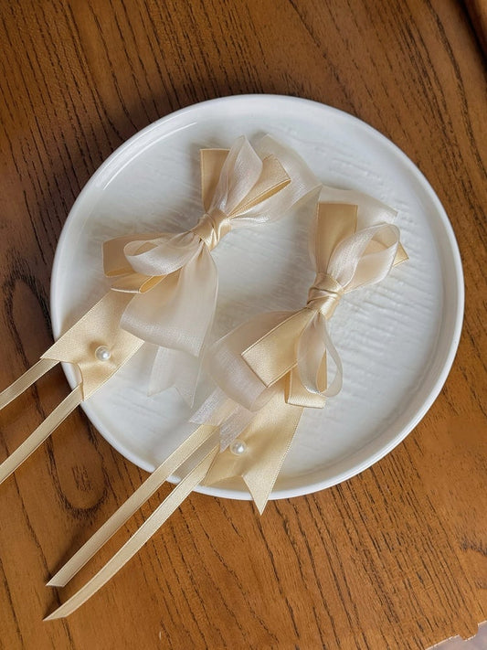 / BlackGold Bowknot Silver Hairclip Champagne