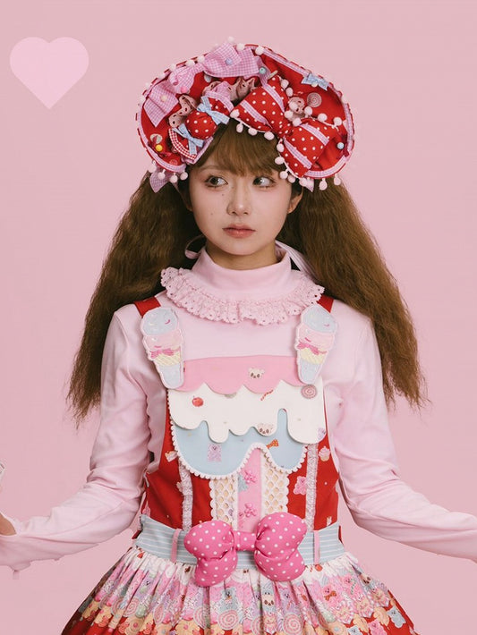 / Dress Red Lolita Decoration JSK Bows Velvet Embroidery Candle