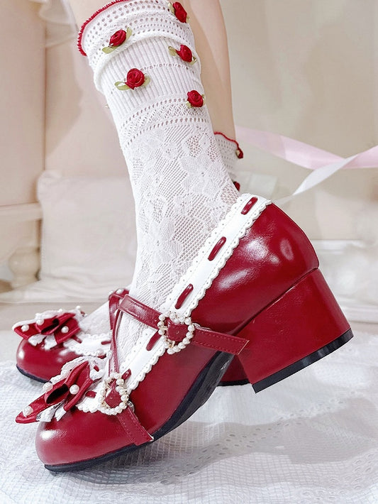 Beaded Mary Pink Delicate - Heart Sweet for Fastener Lolita Edging Janes Lace Low-heel