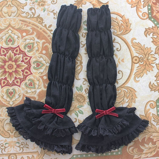 Black and Pink Bow Semi-sheer Over Knee Stockings