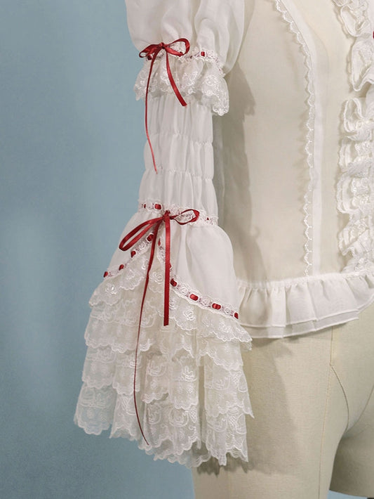 / White Decorated Red Bowknot Chain Pink Bonnet Bead and