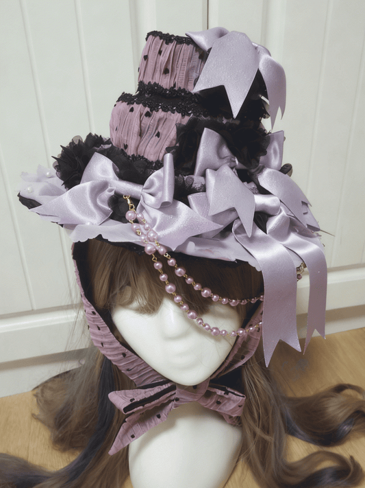 Black Hat Top Polka-Dot Purple Lolita Bowknot Pearl