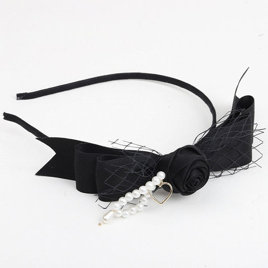 Lolita Pearl Rose Bowknot Black Hairclip