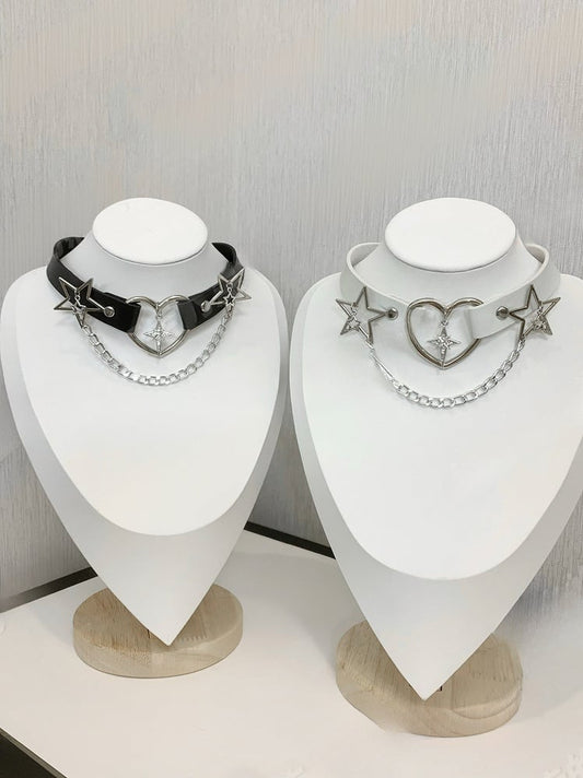 Jirai Kei Black Rhinestone Star PU Choker with Chain