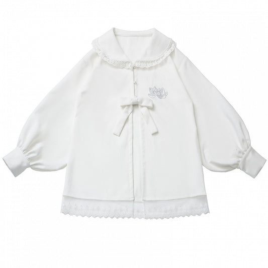 White Lotus Peter Pan Collar Lace Accents Chenille Blouse