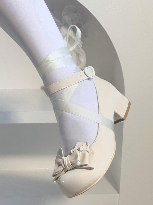 Lolita Snap Jane Sweet Bow Mary Shoes White with Decor Star