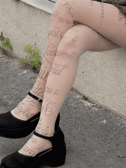 Semi-sheer and White/Nude Print Pantyhose Star Bowknot