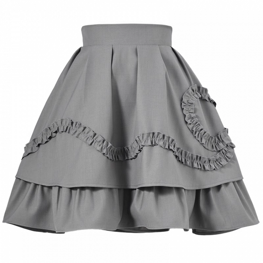 Grey Style Ruffled Bow Double-Layered A-Line Skirt Preppy