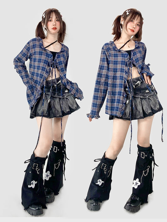 Y2K Top Plaid Neck WhiteBlue Pattern Glamorous Halter