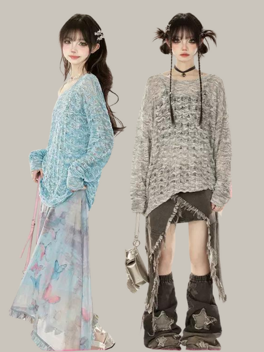 Collar Pullover Knit Sunscreen Sheer Soled Loose