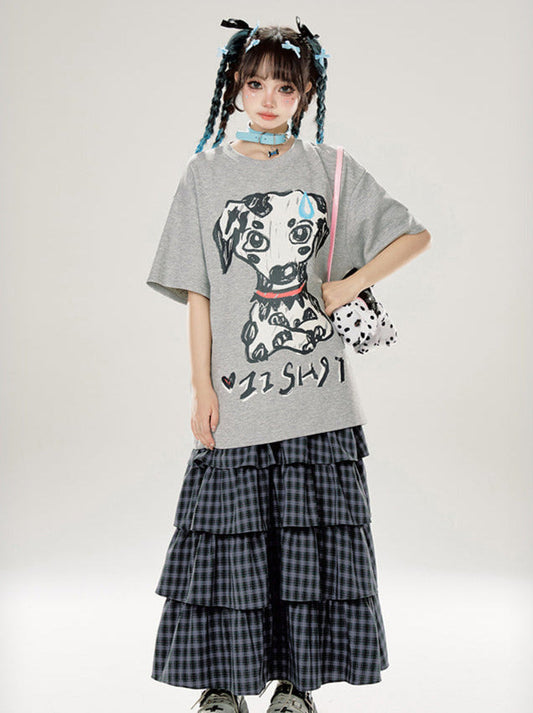 Knit Aplicot T Long Print Letter Off-Shoulder Lazy