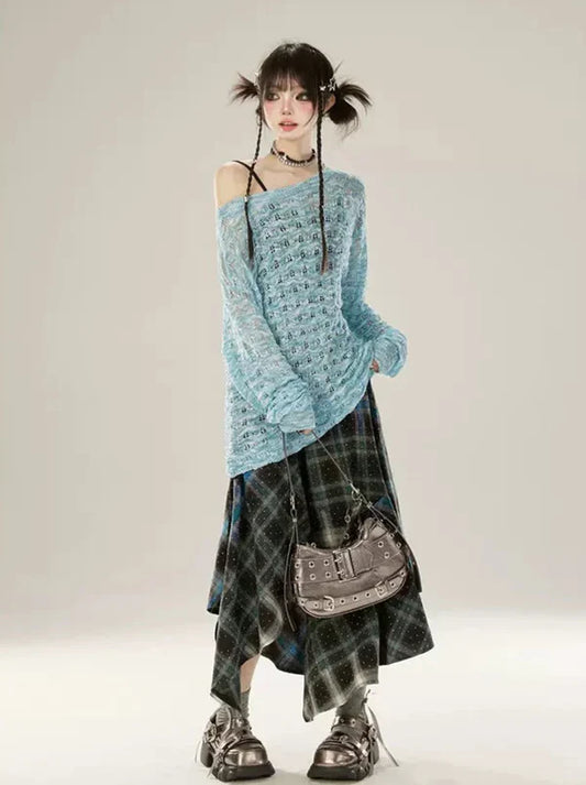 Slim Neck Ground Rippin Knit Irregular Top Summer