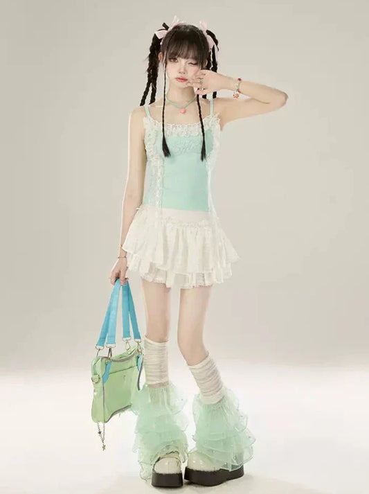 Camisole Pictorial Tulle Long Halter + Neck Sweet Skirt