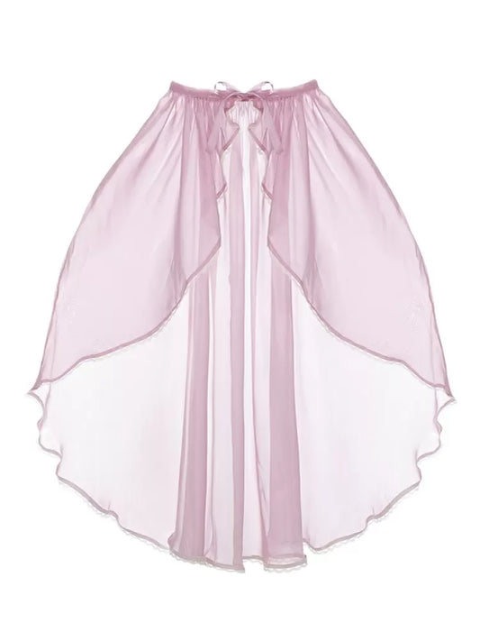 Drawstring Flounce Beige Layered Underskirt Hem