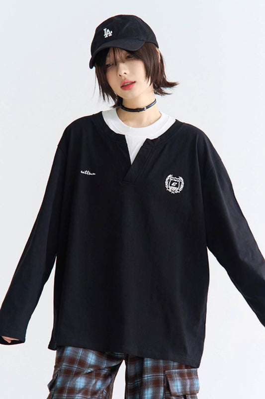 collar Color block long sleeve shirt