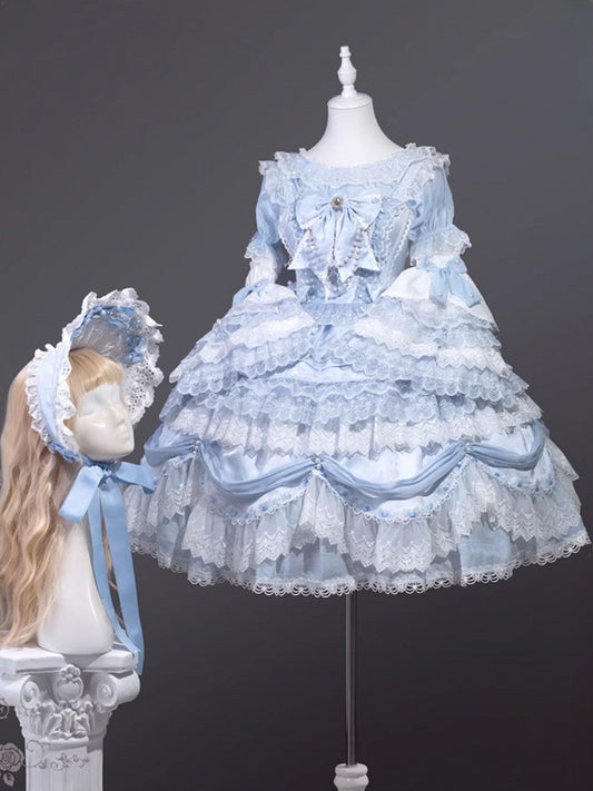 Light Blue Bow Accent Layered Skirt Hanayome Dress Sweet Hime Lolita Jumper Skirt