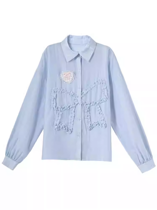 Semi-sheer Ruffled Bowknot Applique Blue Sun Protection Shirt