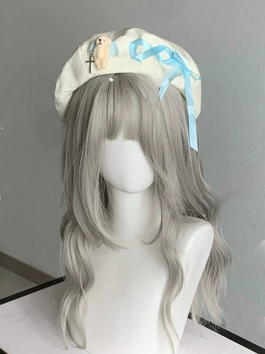 Rhinestone Plush Angel Bear Beret with Lace-up Detail