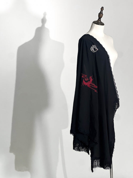 Red / Black / Purple Dragon and Moon Embroidery Shawl