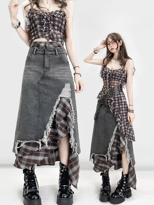 Glamorous Trim Pattern Gary Plaid Bittersweet Distress