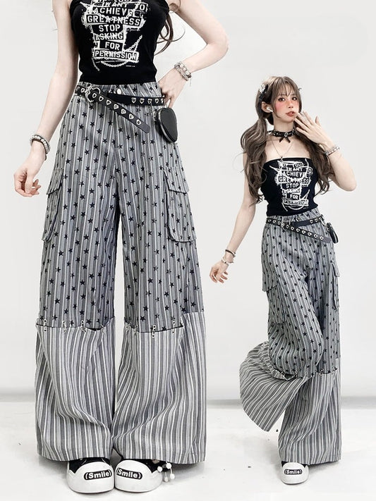 Glamorous Cut Wide-leg Bittersweet Gray Pattern Striped Star And