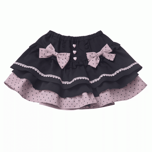Tiered Skirt with Detachable Bows Black and Pink Polka-dot Pattern