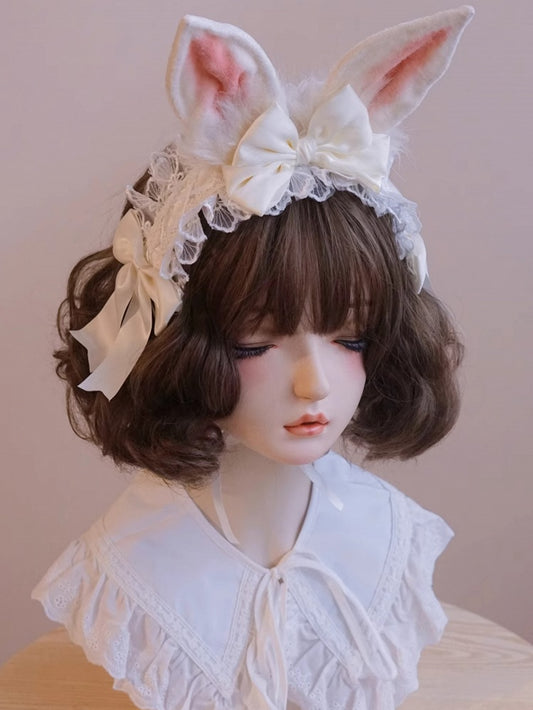 Ear Details Trim Lace White Bunny Bowknot KC