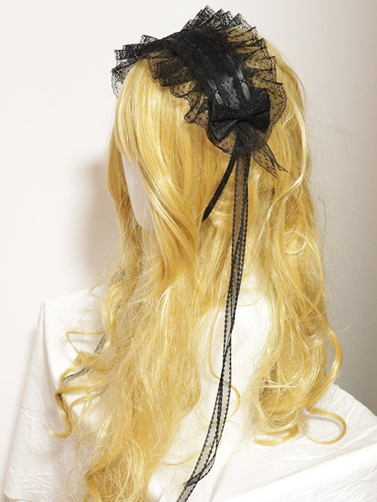 Lace Polka-Dot Bowknot Trim Haiband Pattern Black/BlackWhite Details