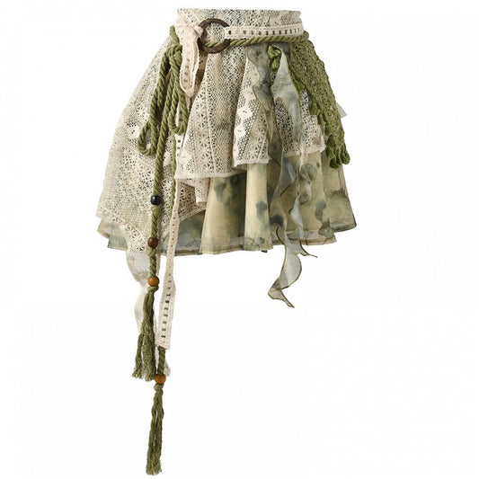 Dye Lace Patchwork Design Long/Short Tie Skirt Version Kei Green Mori