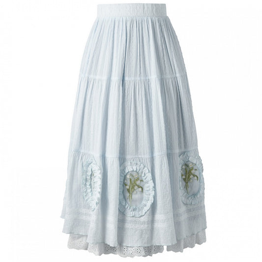 Skirt Light Blue Lily-of-the-Valley Embroidered Lace Trim Cutton