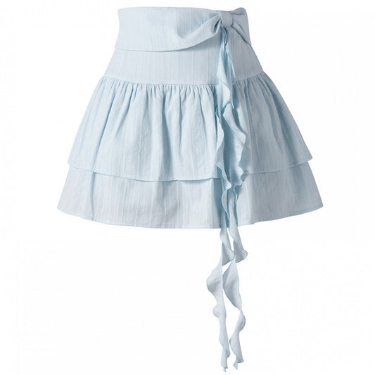 Yume Kawaii Blue Bowknot Detail Waist Tiered Skirt