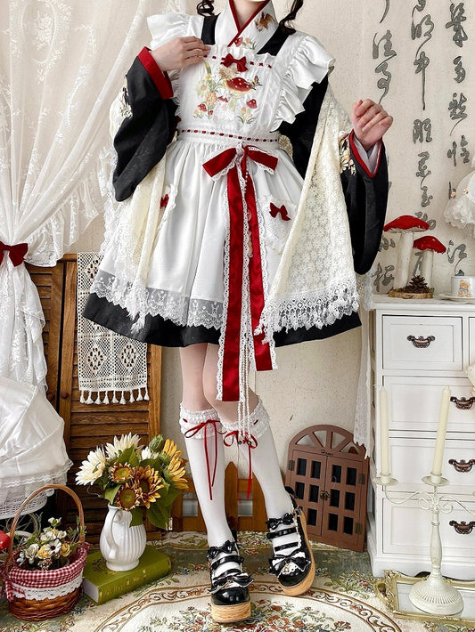 Summer Pleated Jumper Trim Ruffle Lolita and Black Skirt