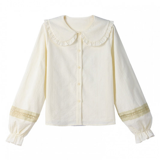 Ruffled Sleeves Blouse Peter Pan Collar Long Light Yellow