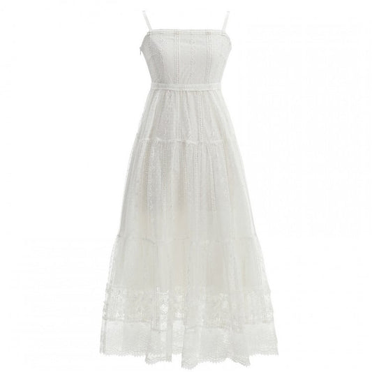 Lace Slip Dress Length White High Waist Ankle