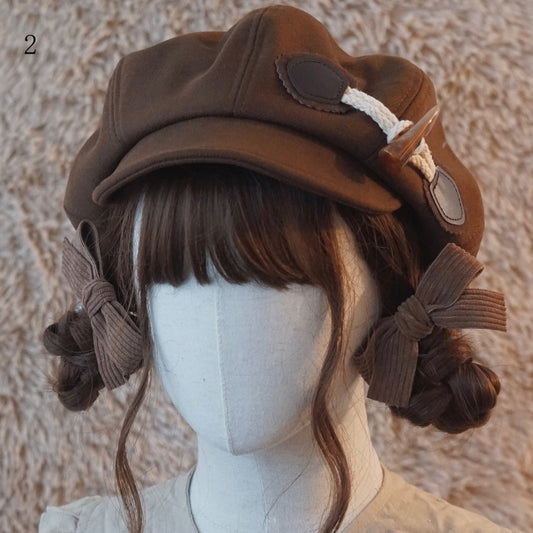 Brown Beret Decorated Button Hat