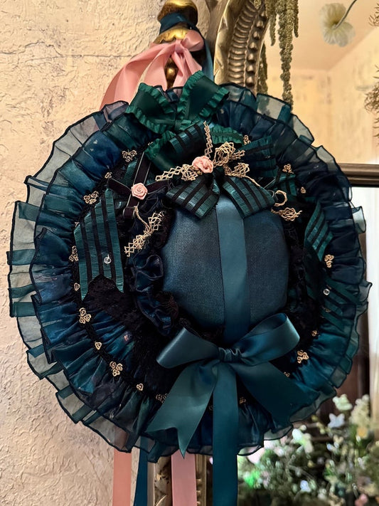 Green Bowknots and Floral Decorated Lolita Hat