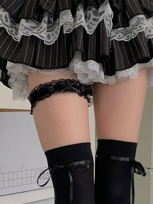 Pink Sweet Rose Bowknot Lace Trim Leg Loop