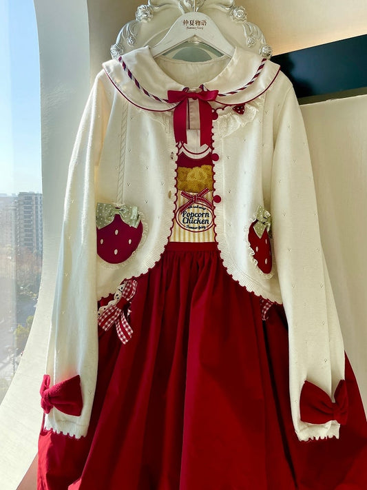 White Long Sleeves Strawberry Applique Cardiagn