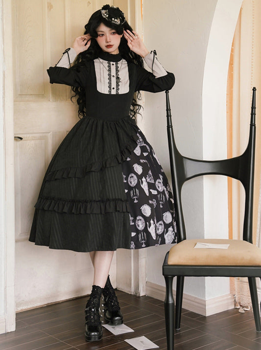 faux ribbon college Gothic two-piece + dress Lolita