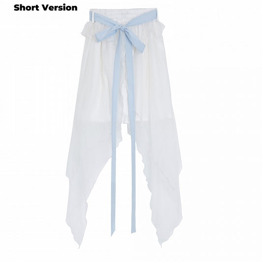 White Asymmetrical Mesh Hem Skirt Version with Bow Short/Long Self-tie