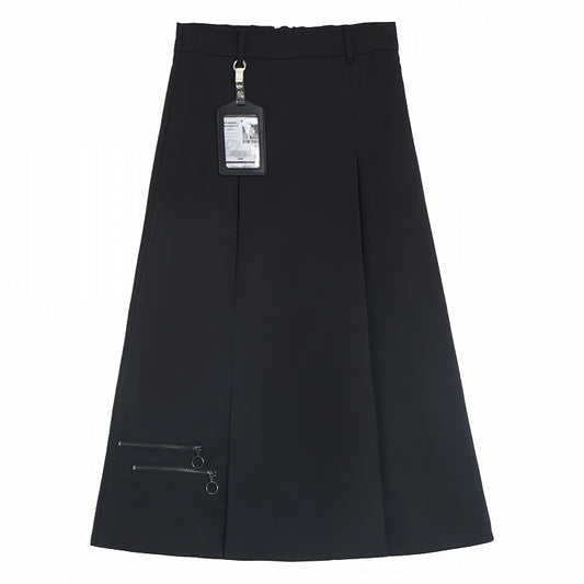 Skirt Box Pleat Ankle Black Zipper Details Length