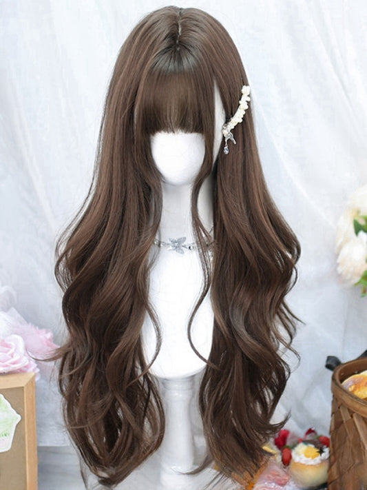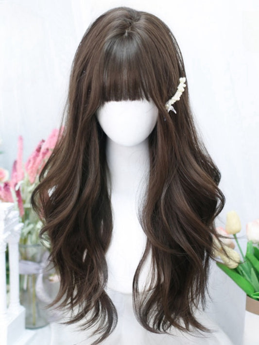 Brown 65-70CM Waist Length Wavy Wig With Air Bangs
